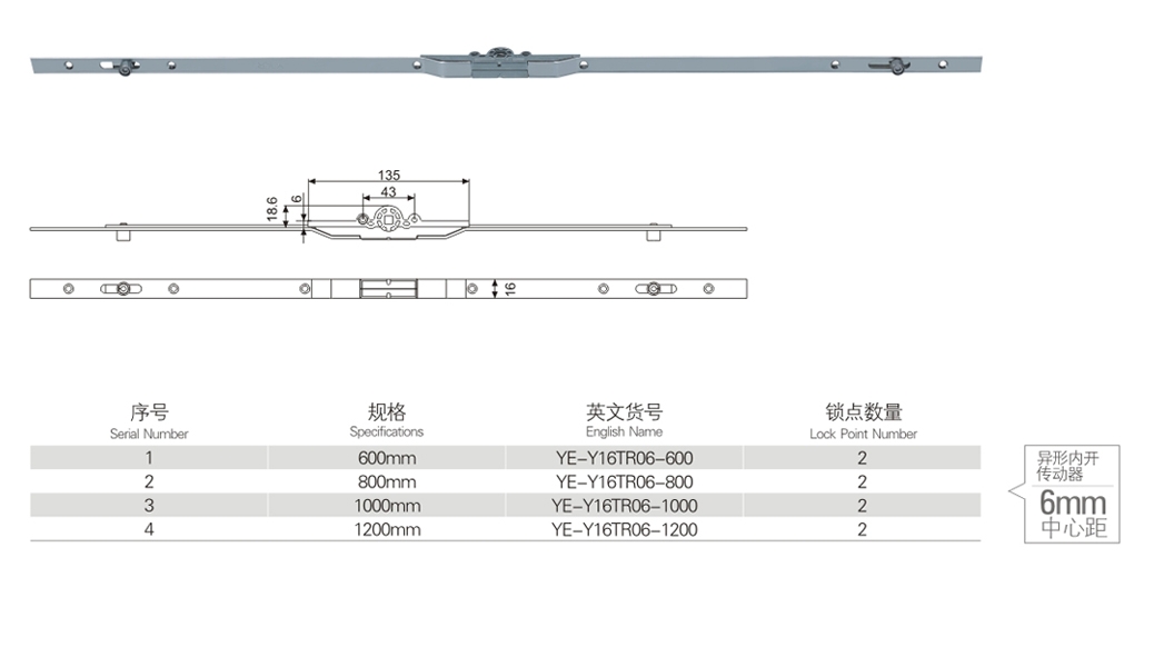 异形内开传动器 6mm中心距