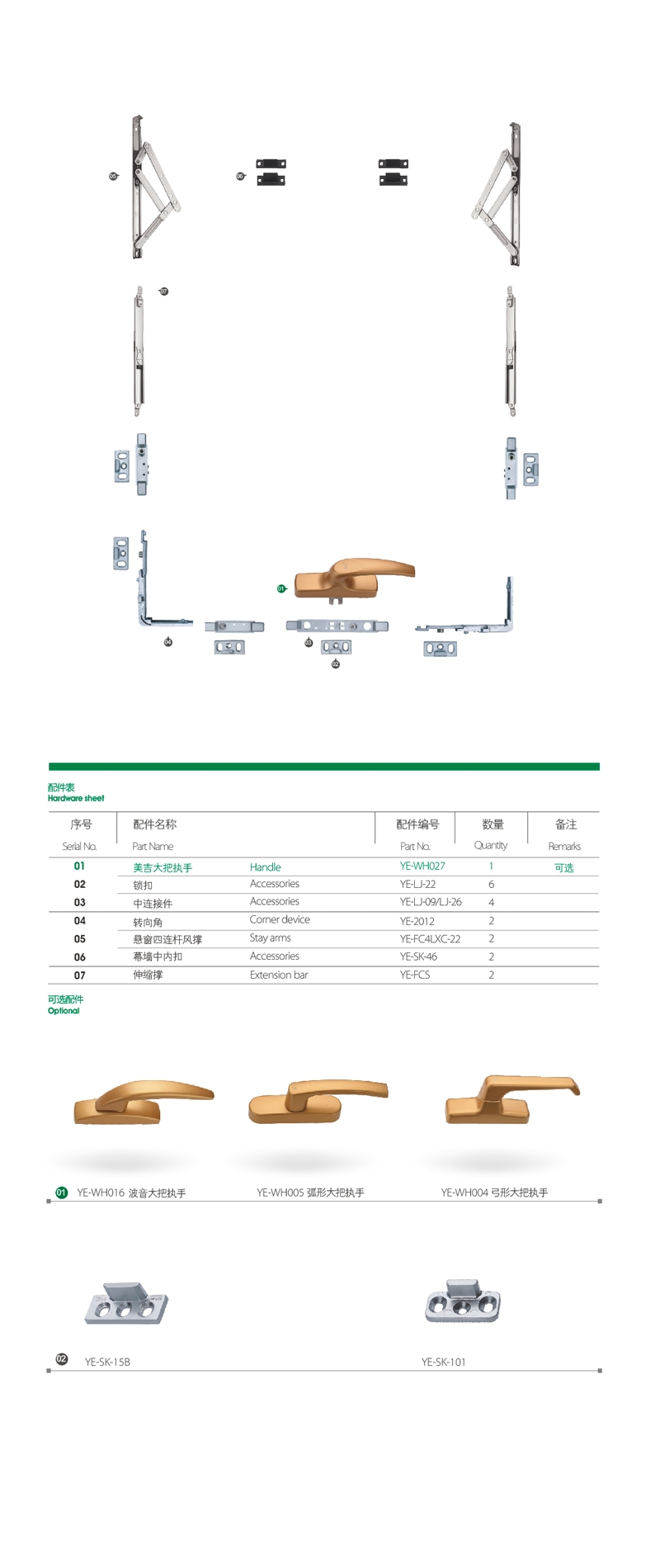 Hardware for aluminum windows and doors