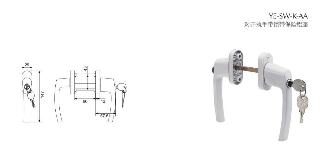 对开执手带锁带保险铝座