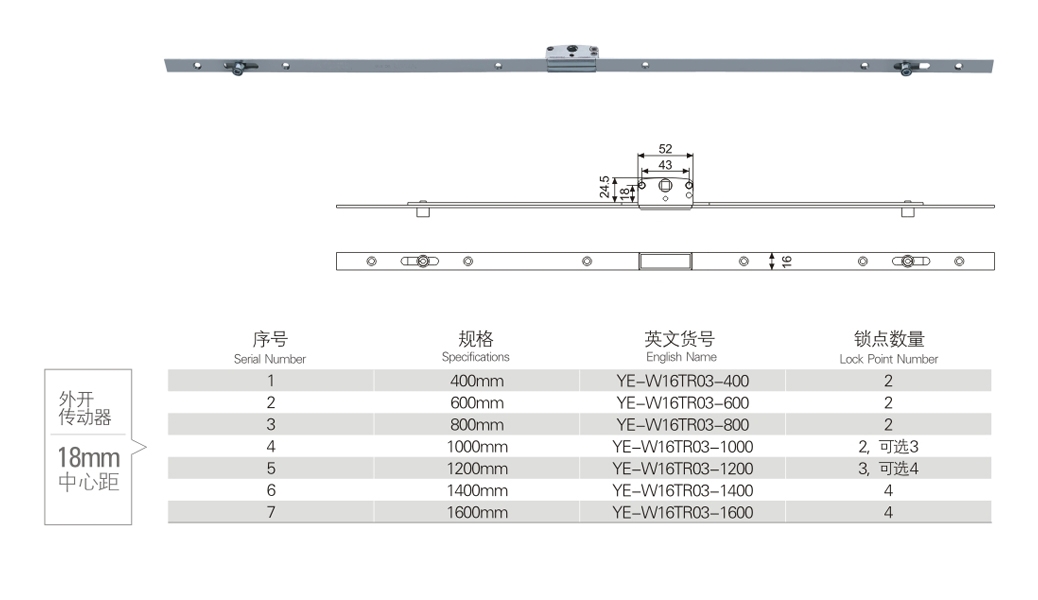 18 mm centre distance of external drive
