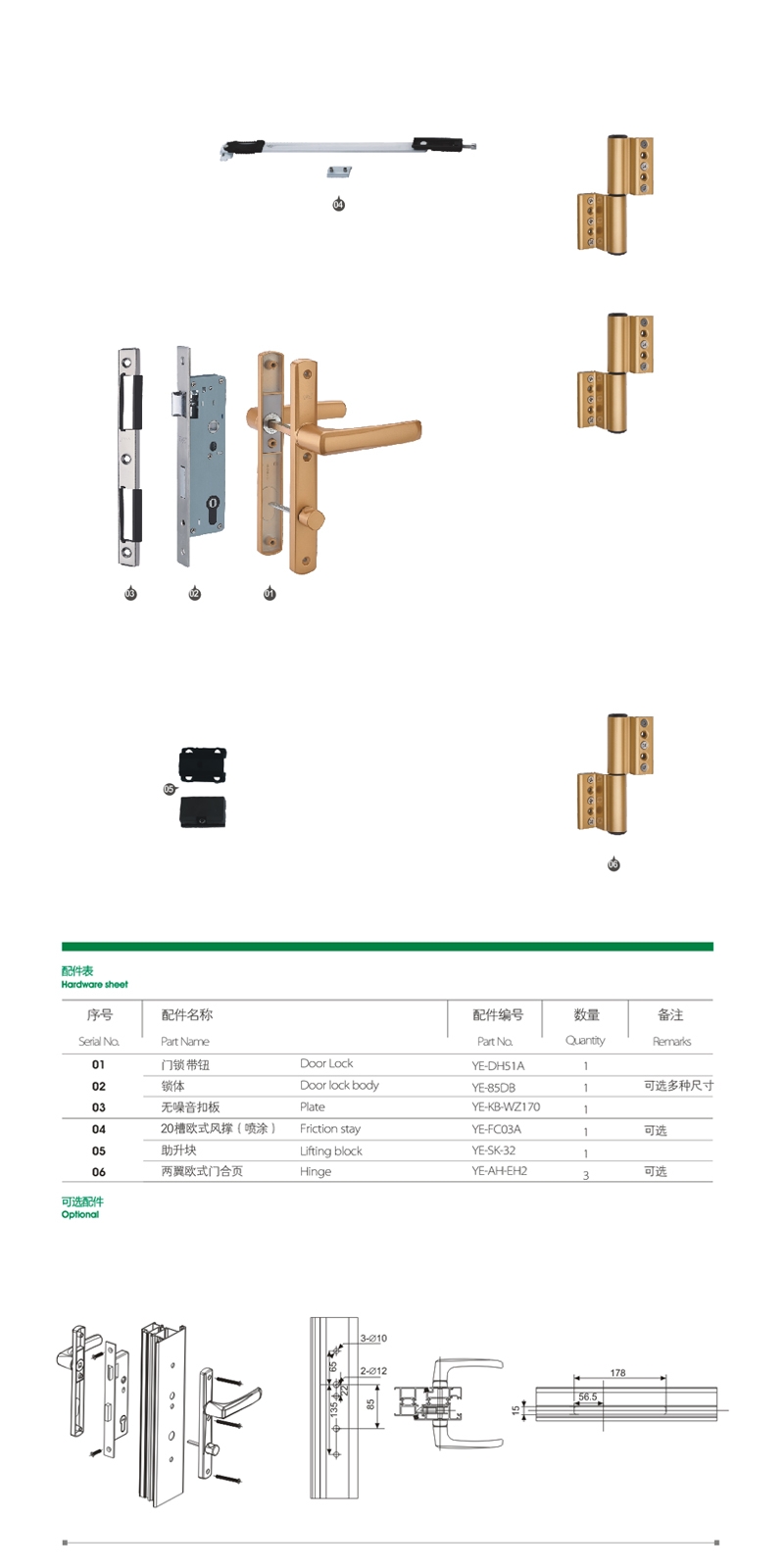 Hardware for aluminum windows and doors